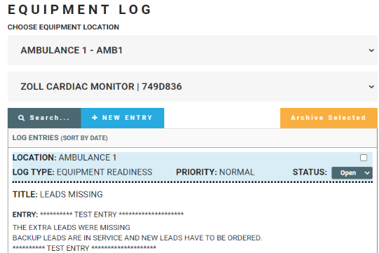 Emergency Logs Equipment Logs